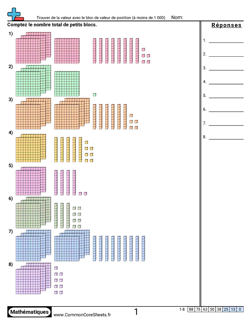 Trouver la valeur avec des blocs de valeur de position (jusqu’à 1 000)